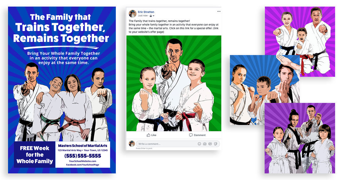 Use this ads to invite families to train together in all arts. We have an alternate version specifically for kicking arts.