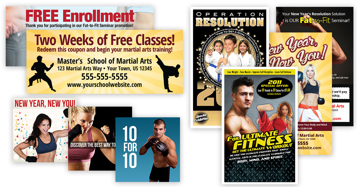 Choose from these New Year's Resolution promotions dealing with fitness, weight loss, and other common resolutions for adults and children.